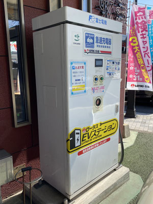 ロータス麻生にはEV用急速充電設備があります。道路を渡れば、そこは湯の坪街道。充電中に散策を楽しめます。